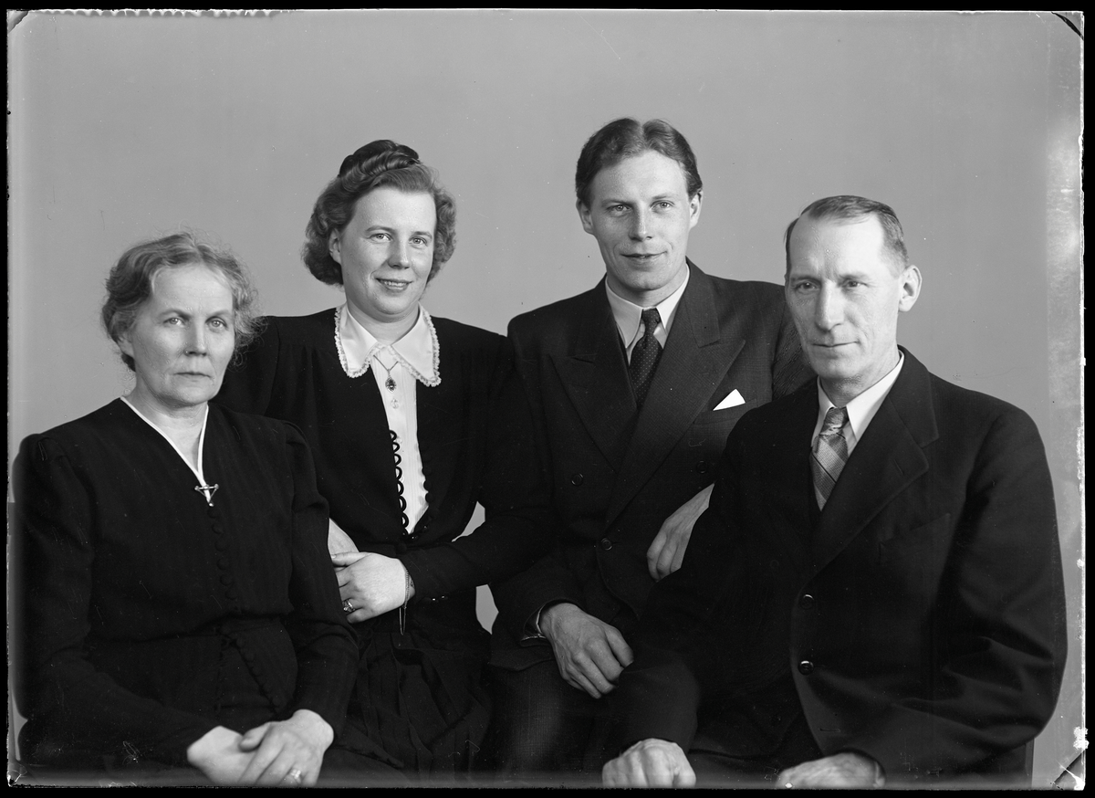 Titel: Grupporträtt, fyra personer. H.E. Danielsson, Box 339, Hallstahammar. Ur Gustaf Åhmans samling.