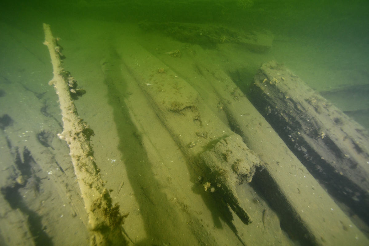 Knekten ligger nedfallen där två urtag syns för blockskivor och även urtaget för däcksbalken.