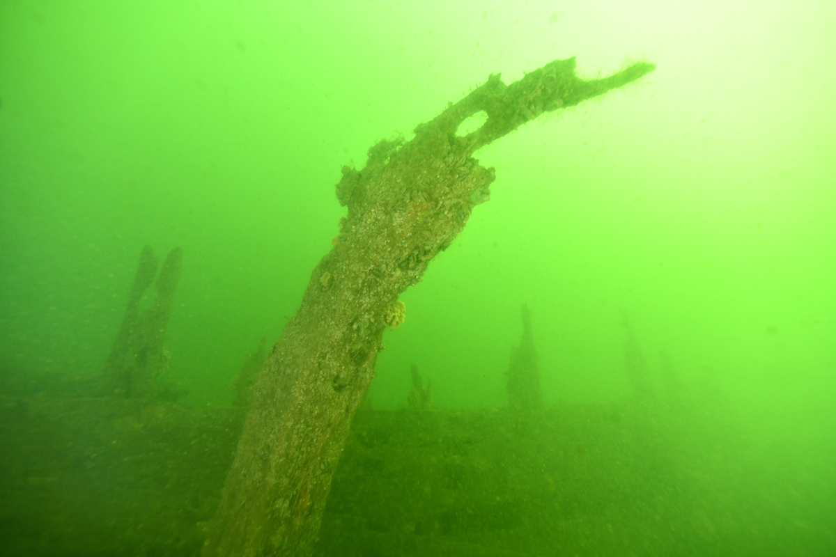 Knät står något infallen från skrovet. Av vinkeln att döma ser det ut att vara till det övre däcket.