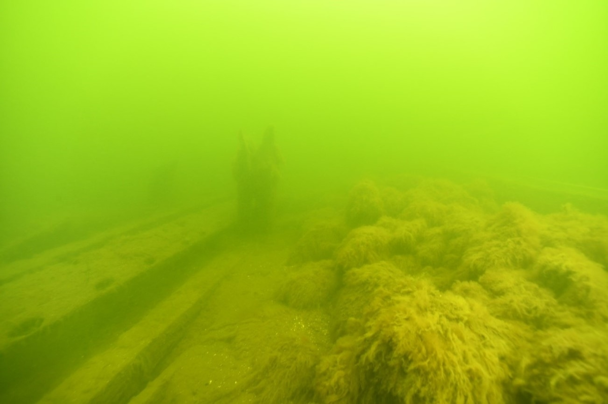 Vraket syns delvis under stenpackningen som påträffades i vraket