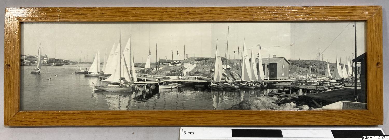 Hamnen på Framnäs. SS Fram klubbområde på Björkö. På andra sidan vattnet ses Kalvsunds samhälle.