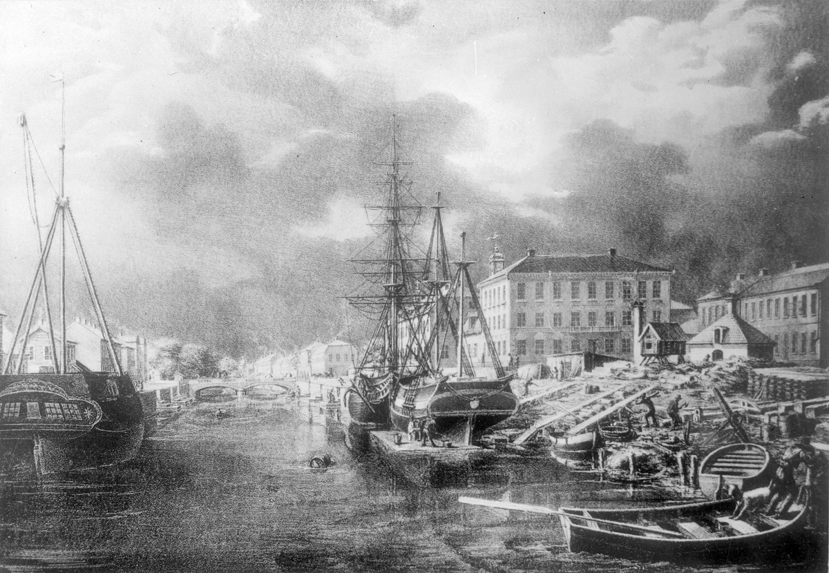 Vy över Gamla Gävle. Reproduktion. Januari 1969