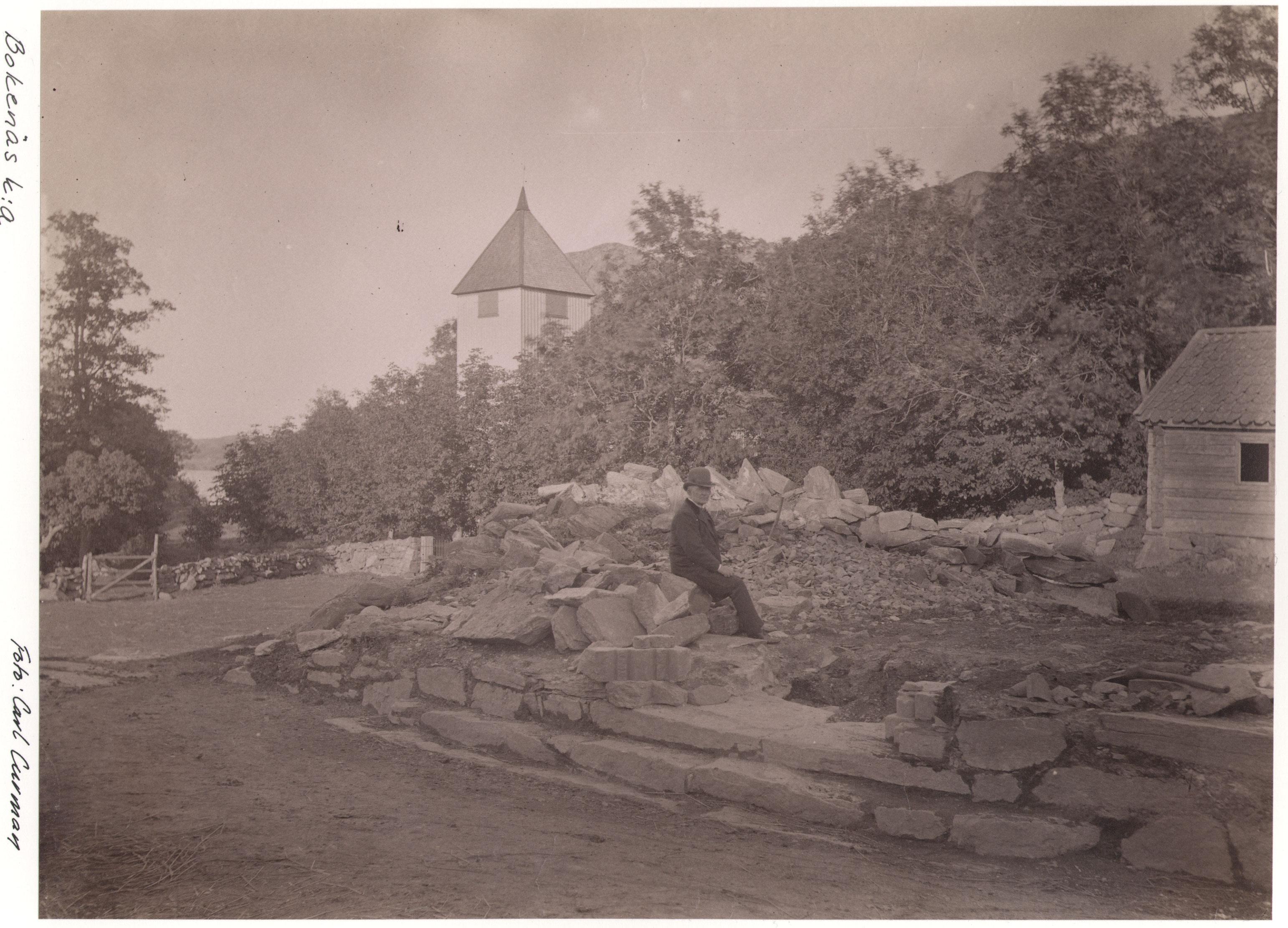 UDDEVALLA DRAGSMARKS KYRKA 1:1 - husnr 1 Dragsmarks kyrka, från sekelskiftet 18-1900. Ruinområde med RAÄ-nummer Dragsmark 2:1. Sittande på bilden ingenjör Lindvall.