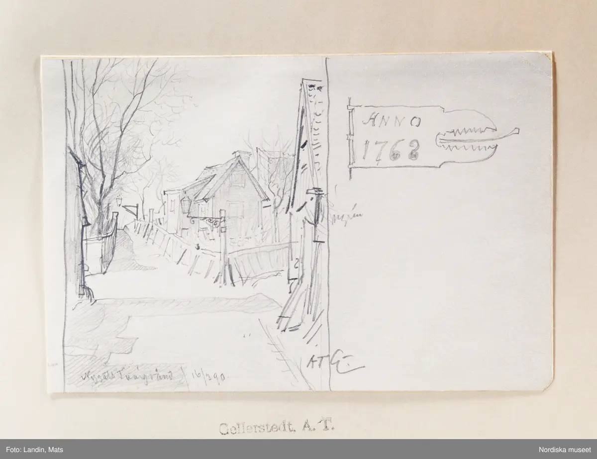 A T Gellerstedts akvareller, tillfällig utställning på Nordiska museet 7 april 2001. Skiss från 1890. Nygats tvärgränd (Katarina).
