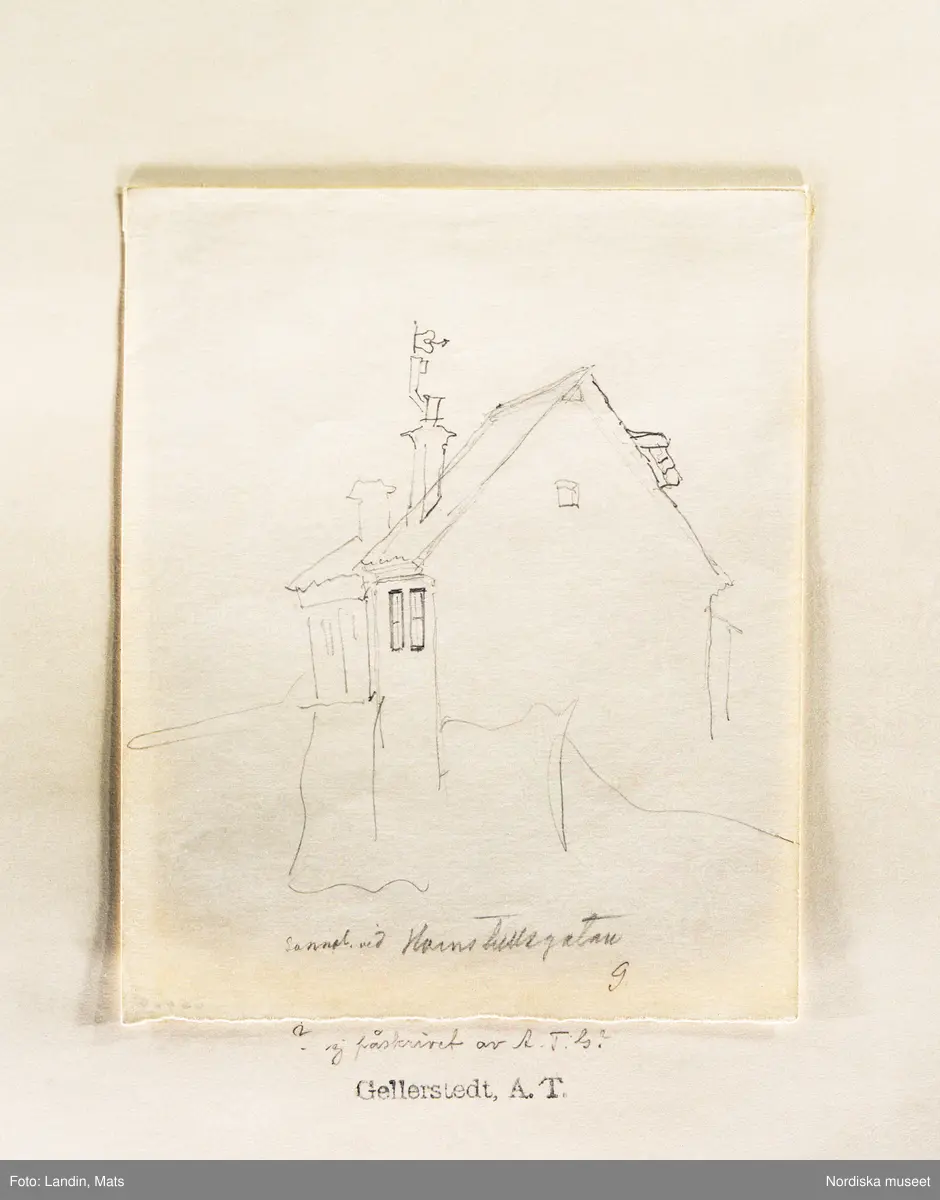 A T Gellerstedts akvareller, tillfällig utställning på Nordiska museet 7 april 2001. Hornstullsgatan 9. Skiss