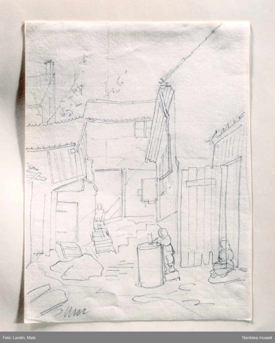 A T Gellerstedts akvareller, tillfällig utställning på Nordiska museet 7 april 2001. Riddargatan. Skiss