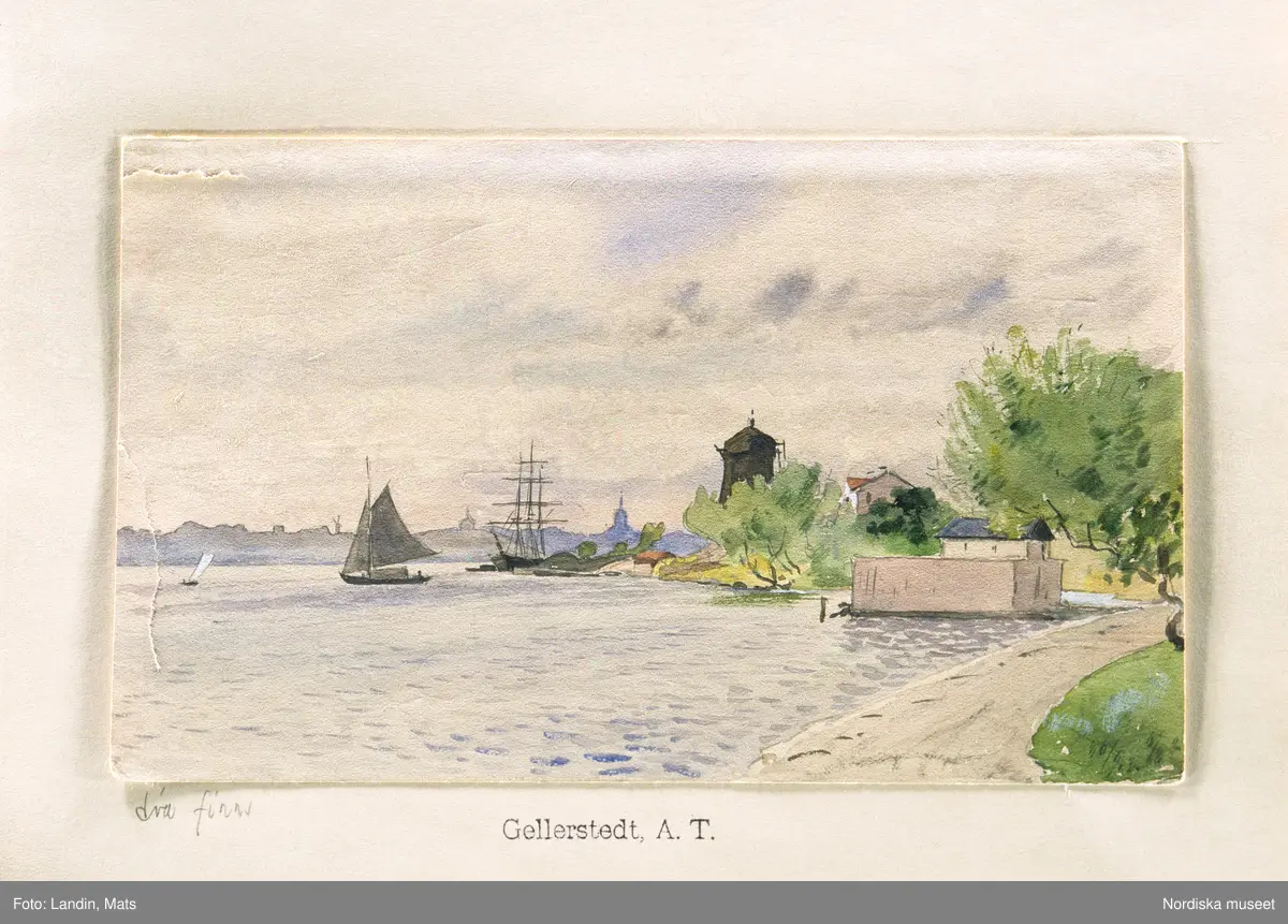 A T Gellerstedts akvareller, tillfällig utställning på Nordiska museet 7 april 2001. Akvarell från juni 1890. Waldemarsudde från öster, juni 1890.