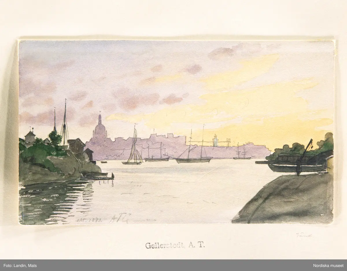 A T Gellerstedts akvareller, tillfällig utställning på Nordiska museet 7 april 2001. Akvarell från oktober 1883. Kv. Grönland, Beckholmen mot söder.