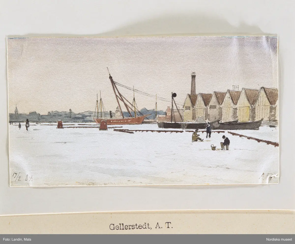 A T Gellerstedts akvareller, tillfällig utställning på Nordiska museet 7 april 2001. Akvarell från 17 februari 1884. Galärvarvet.