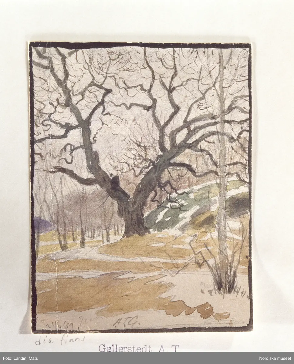 A T Gellerstedts akvareller, tillfällig utställning på Nordiska museet 7 april 2001. Akvarell från 21 april 1889. Ek på Södra Djurgården.