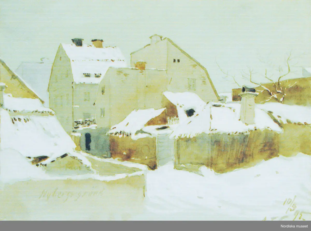 A T Gellerstedts akvareller, tillfällig utställning på Nordiska museet 7 april 2001. Akvarell från mars 1895. Nybergsgränd.