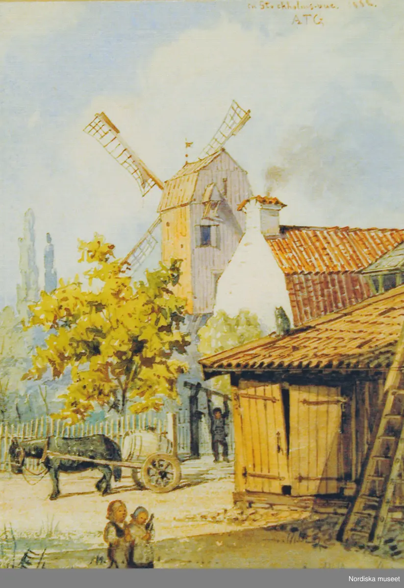 A T Gellerstedts akvareller, tillfällig utställning på Nordiska museet 7 april 2001. Akvarell från 1862. Vid Norrtullsgatan.
