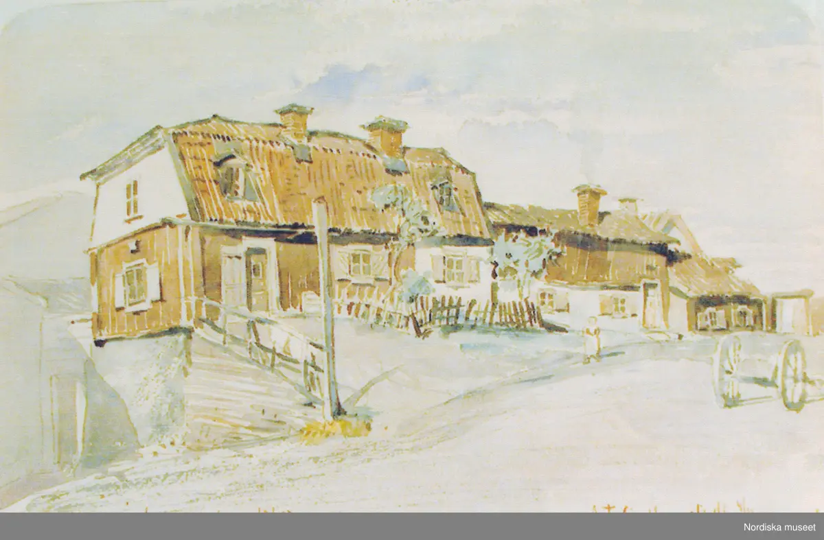 A T Gellerstedts akvareller, tillfällig utställning på Nordiska museet 7 april 2001. Akvarell från 1865. Vid Johannesplan. Kvarteret Oxryggen.