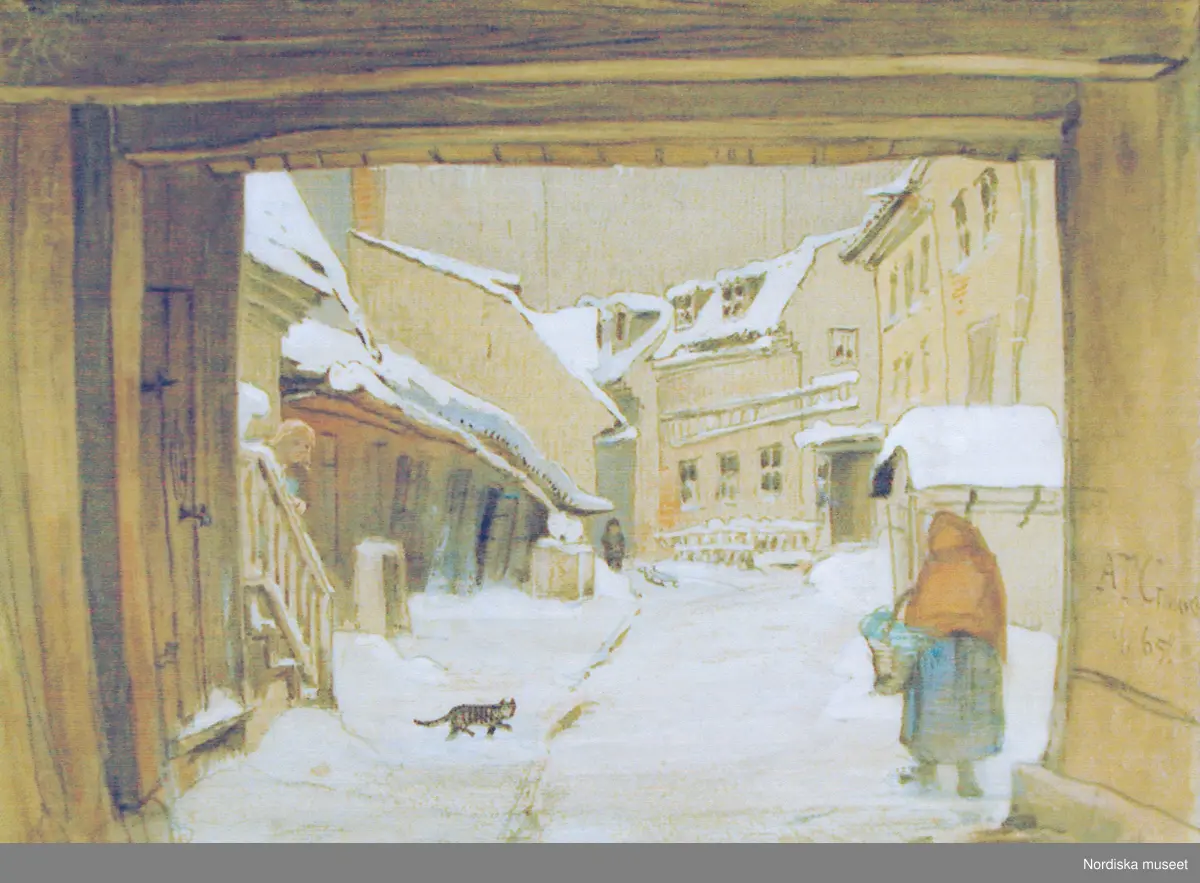 A T Gellerstedts akvareller, tillfällig utställning på Nordiska museet 7 april 2001. Akvarell från 1865. Bakgård vid Klarabergsgatan.