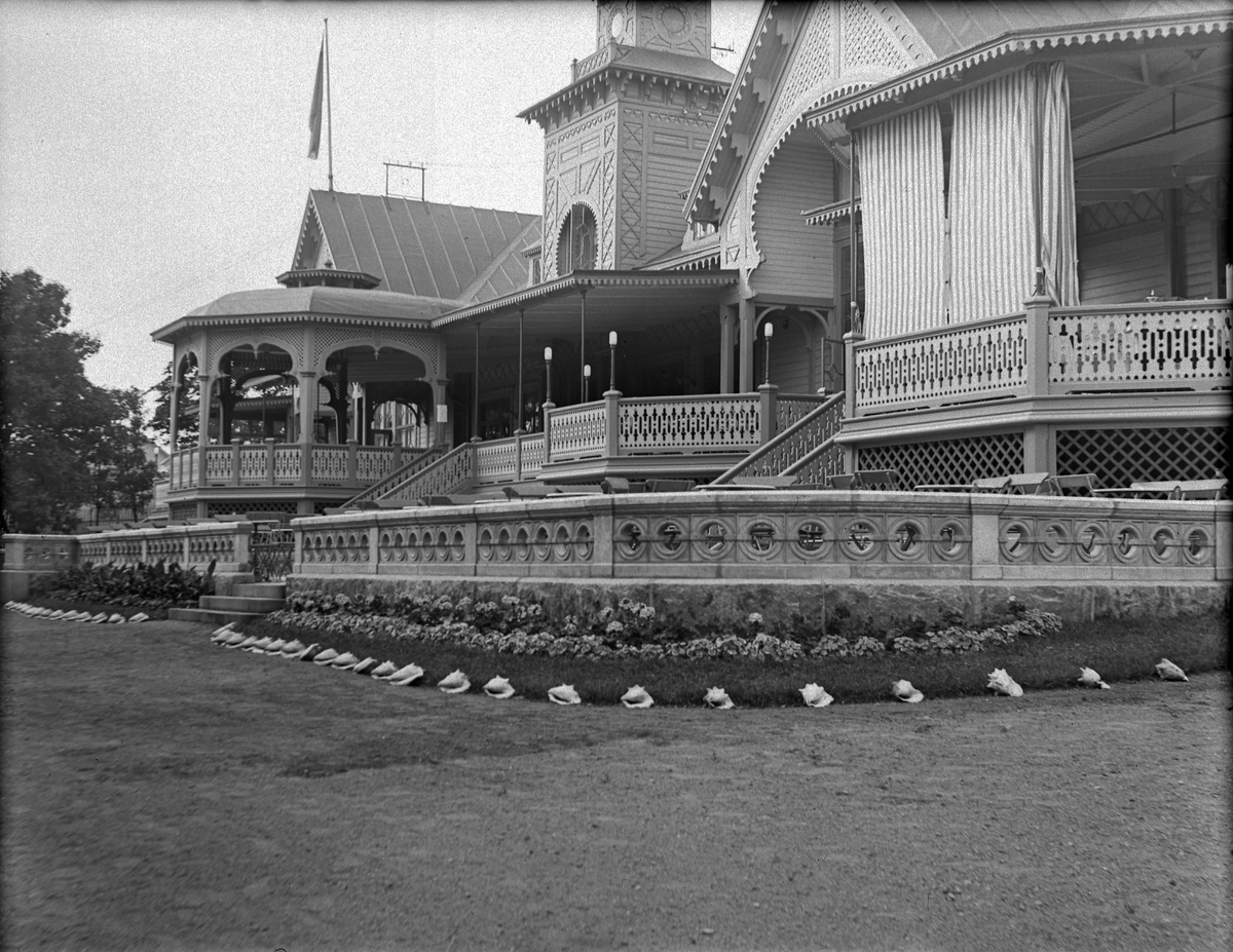 Foto av Societetshuset i Varberg, med sina verandor m.m.