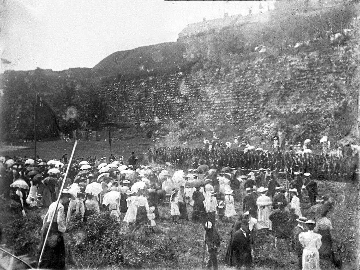 Mängder av folk har samlats på gräsplanen nedanför Varbergs fästning.