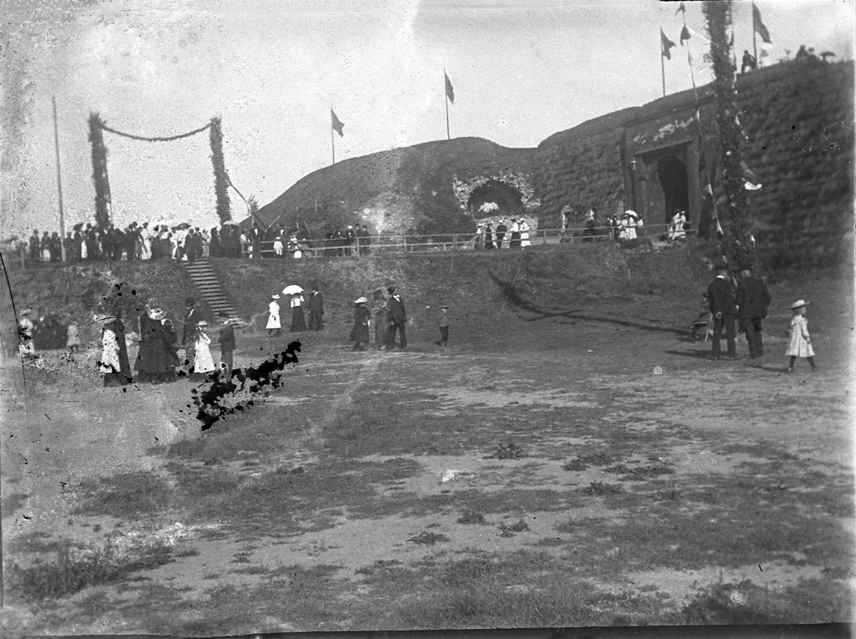 Foto av midsommarstången m.m. utanför Varbergs fästning.