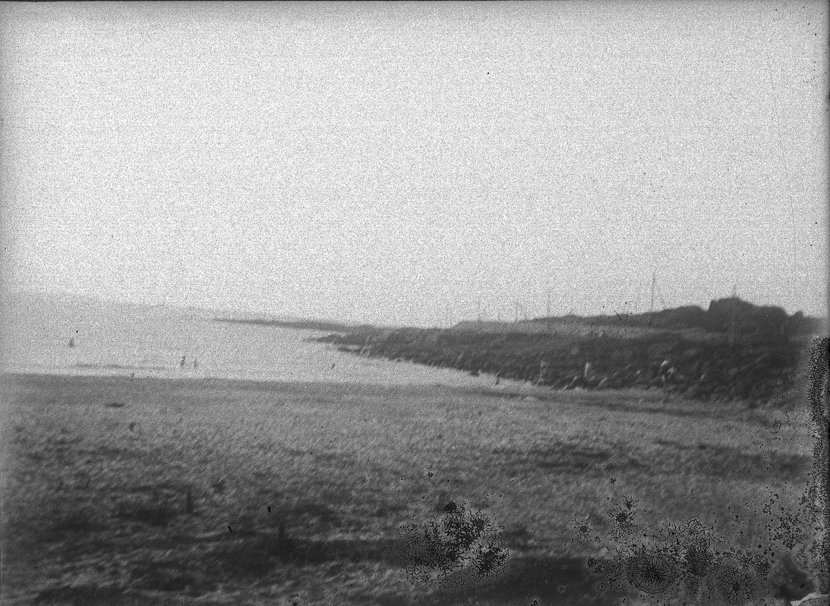Foto av en strand nära Varberg. Man skymtar några badande.
