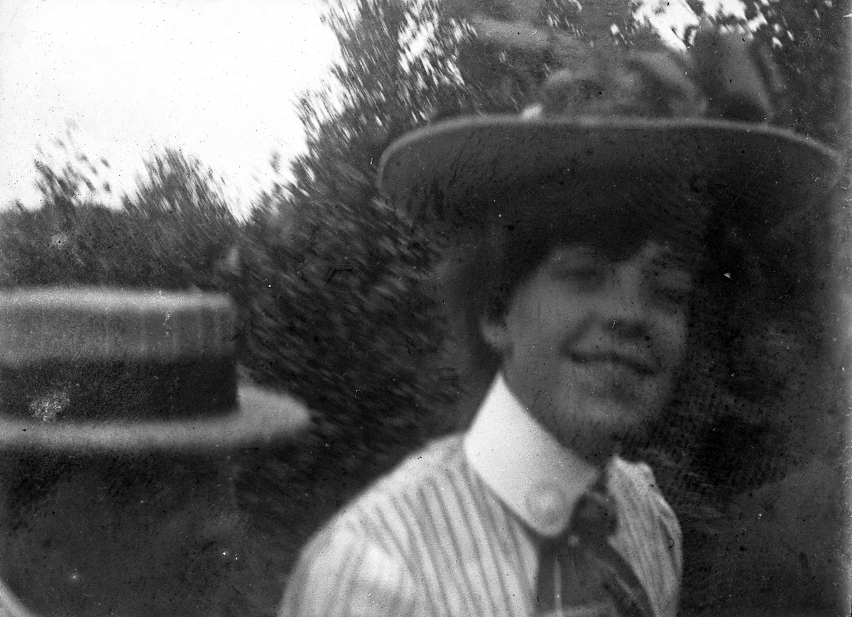 Foto av två kvinnor i hatt, utomhus.