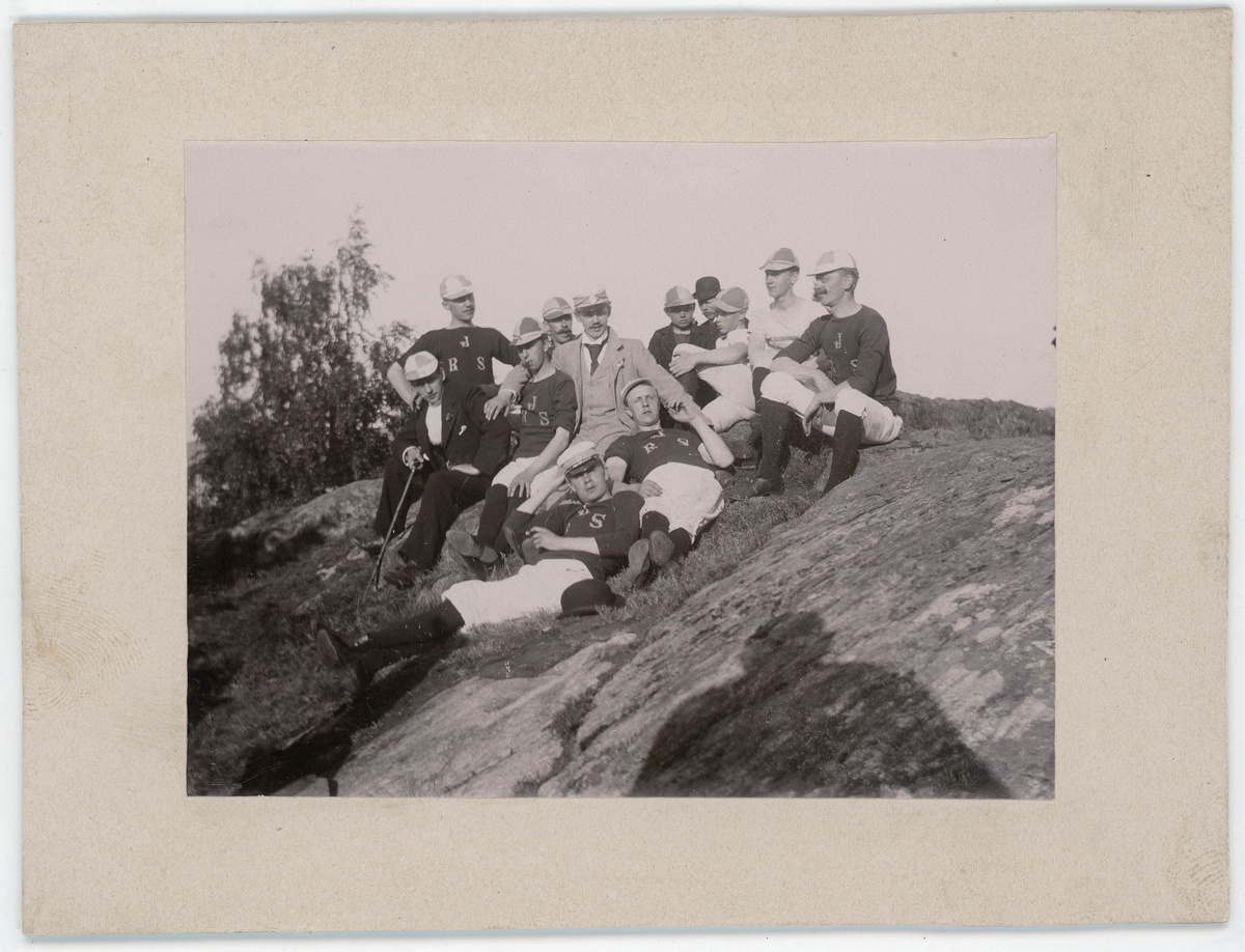Porträtt på en grupp män vid Vista Kulle i Huskvarna den 24 Juni år 1896.
