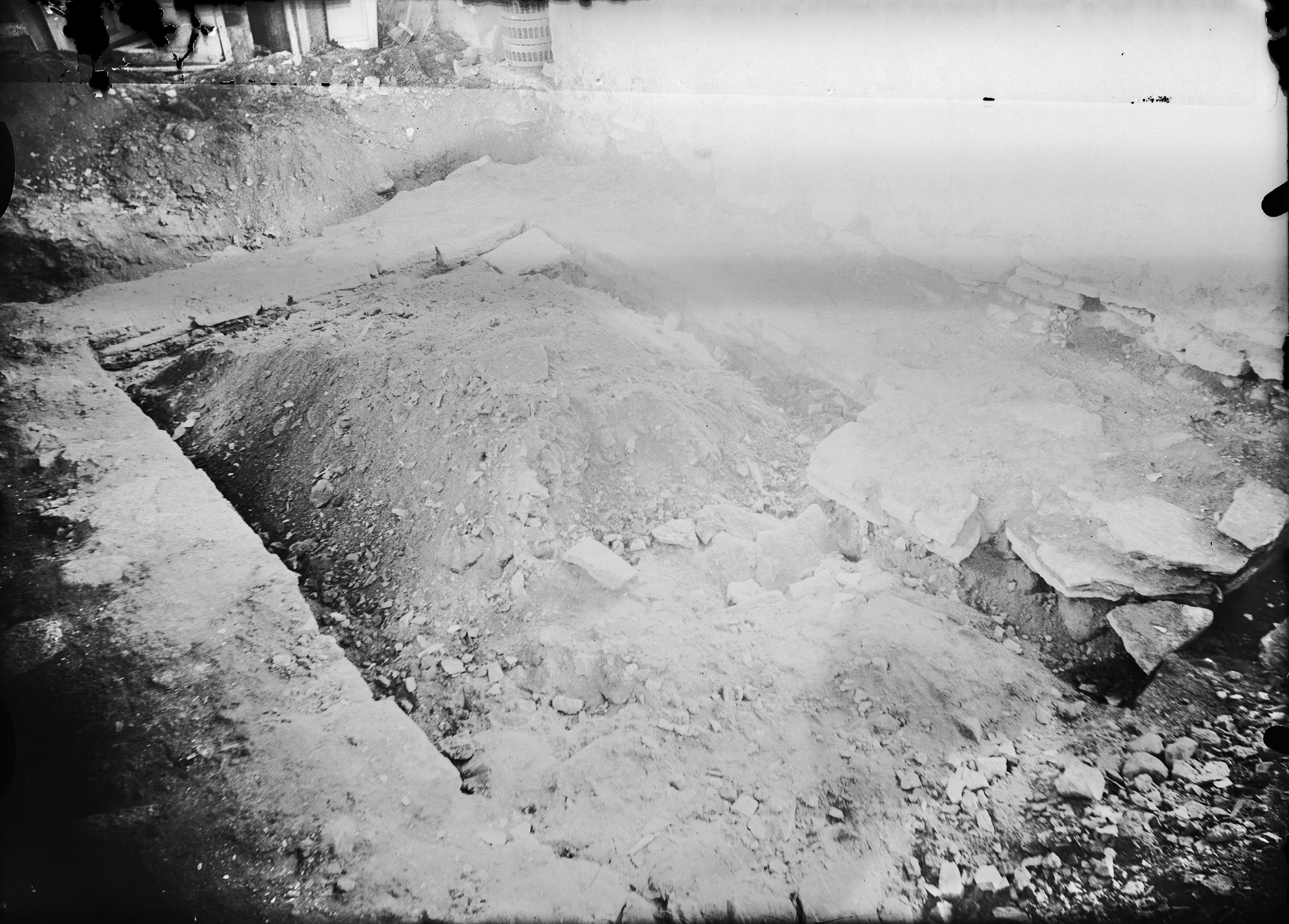 Framgrävning av rester av medeltidskyrkans kor, från nordväst.