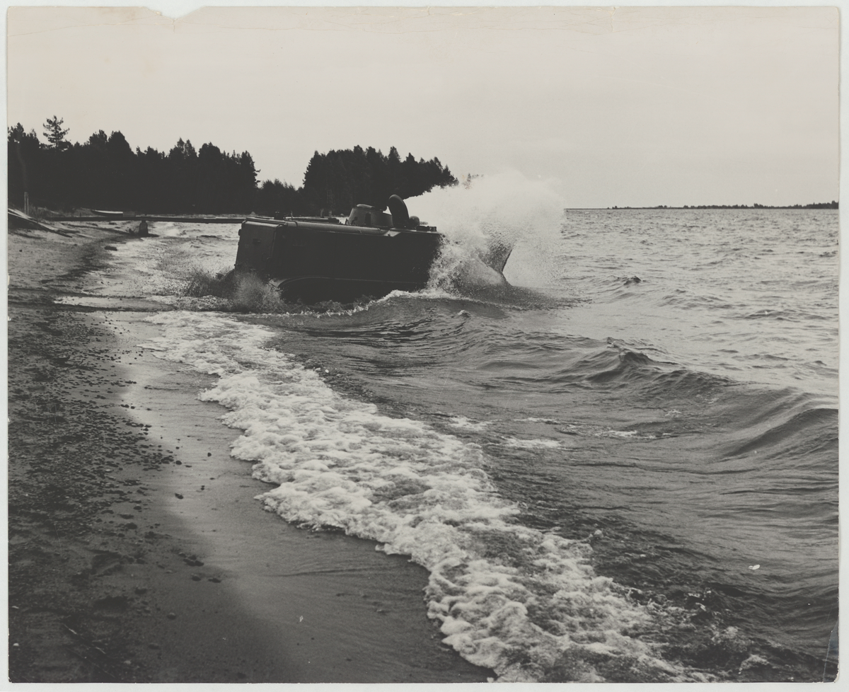 Pansarbandvagn pbv 302 kör ner i vattnet.
