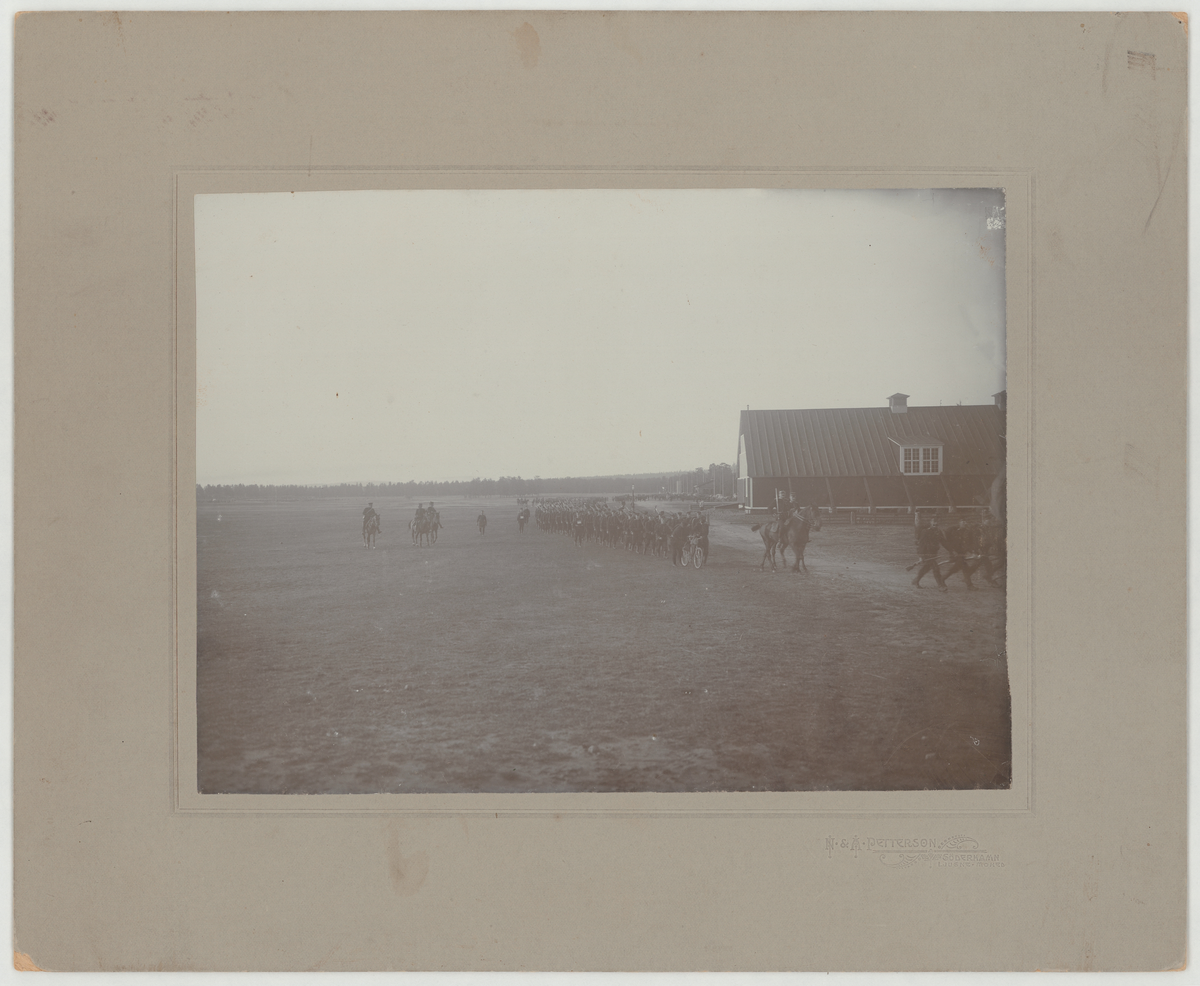 Titel: Marsch med Hälsinge regemente vid ett fält.