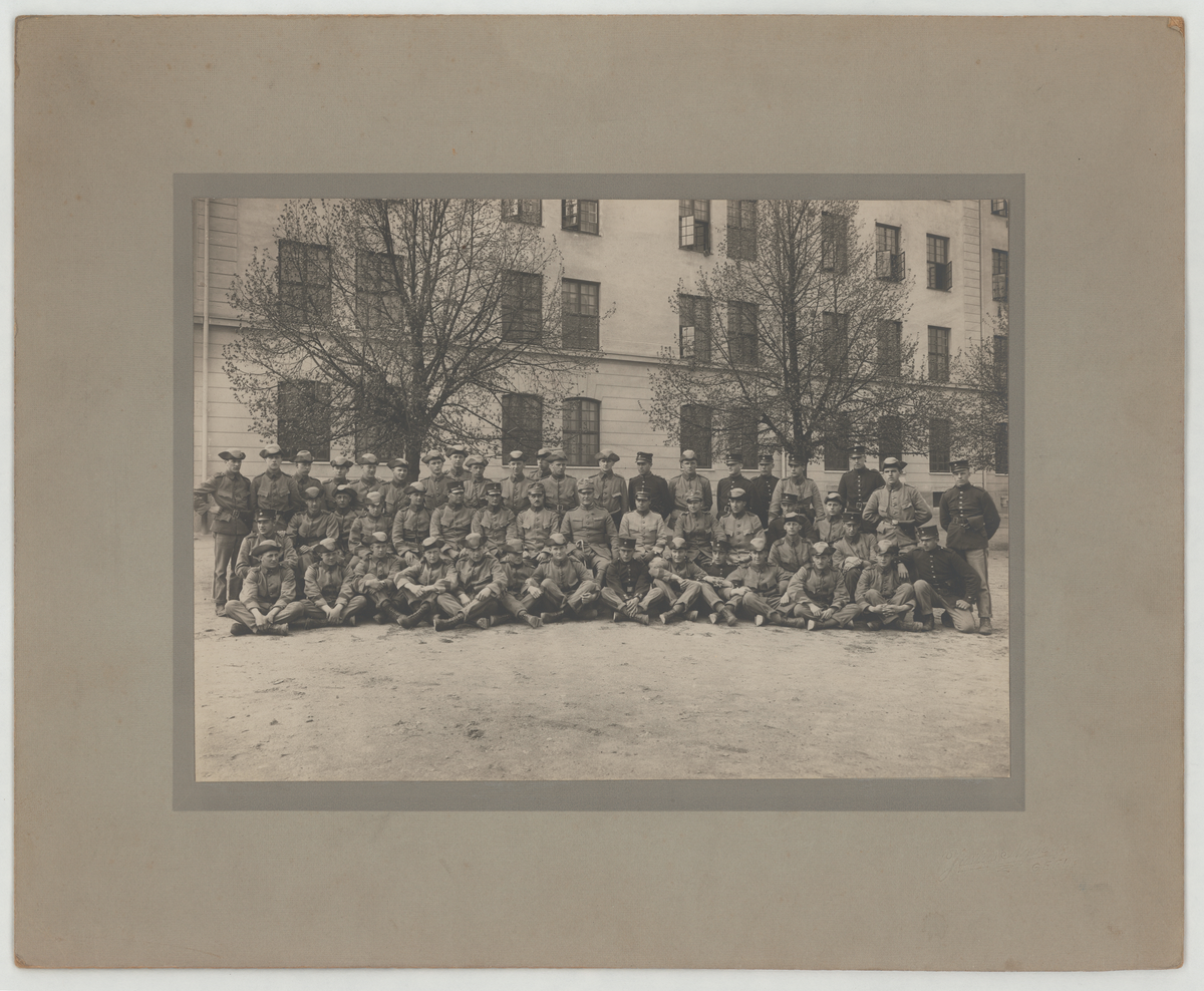 Hälsinge regemente I 14, gruppfoto utanför kanslihuset.