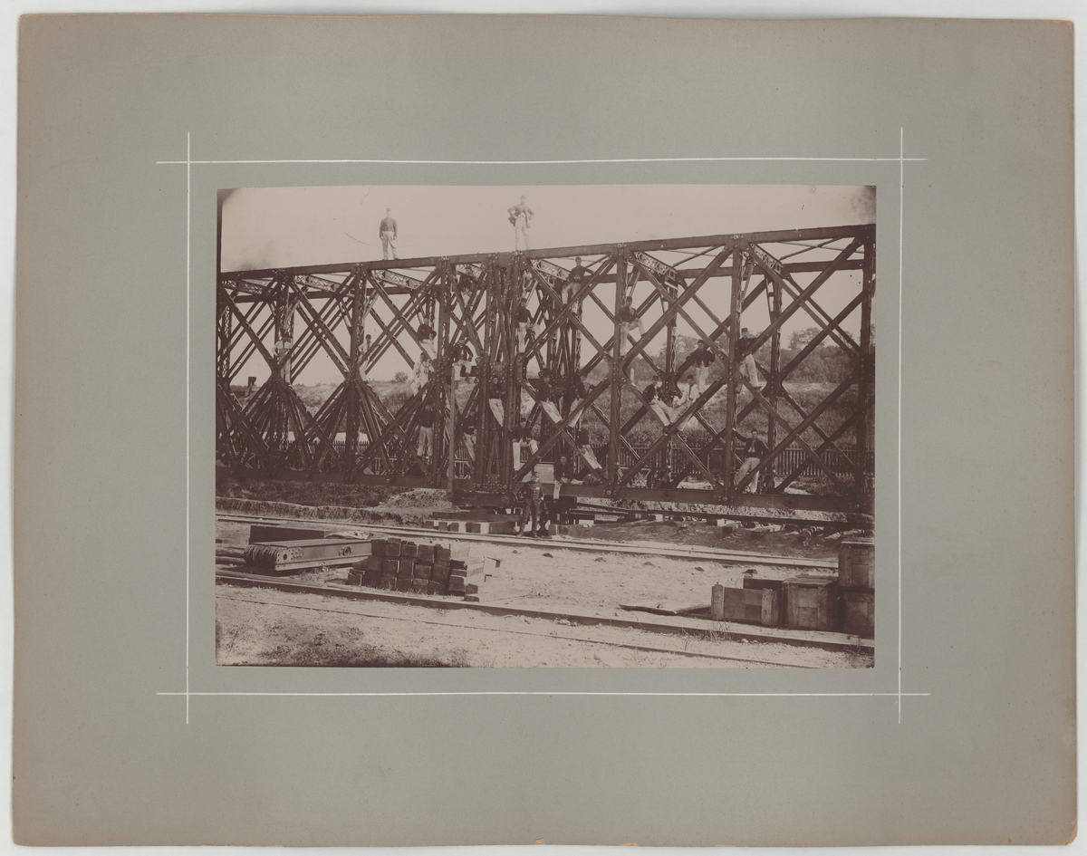 Fransk ingenjörstrupp poserar i fackverkskonstruktion, 1894.
