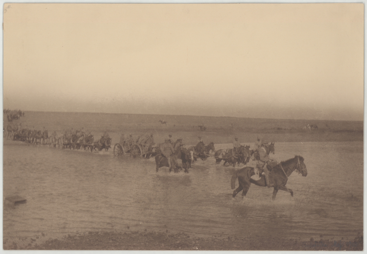 Brittiskt ridande artilleri korsar floden Waal, gräns mellan Orange Free State och Transvaal.