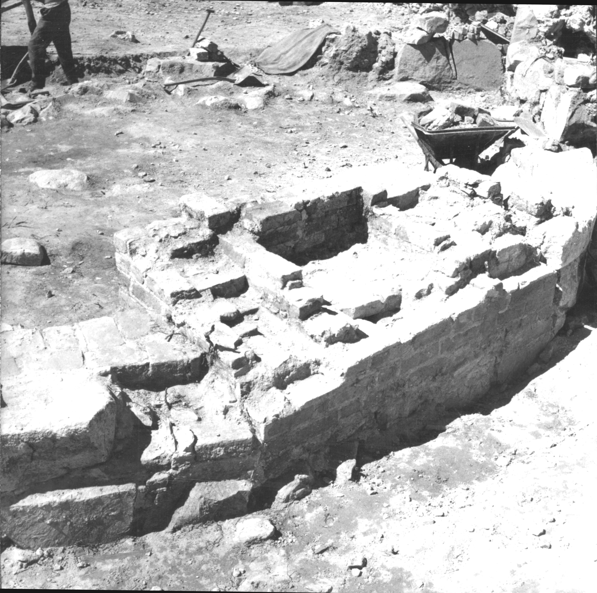 Gudsberga kloster, Husby socken. Altare uppfört av tegel helt frilagt.