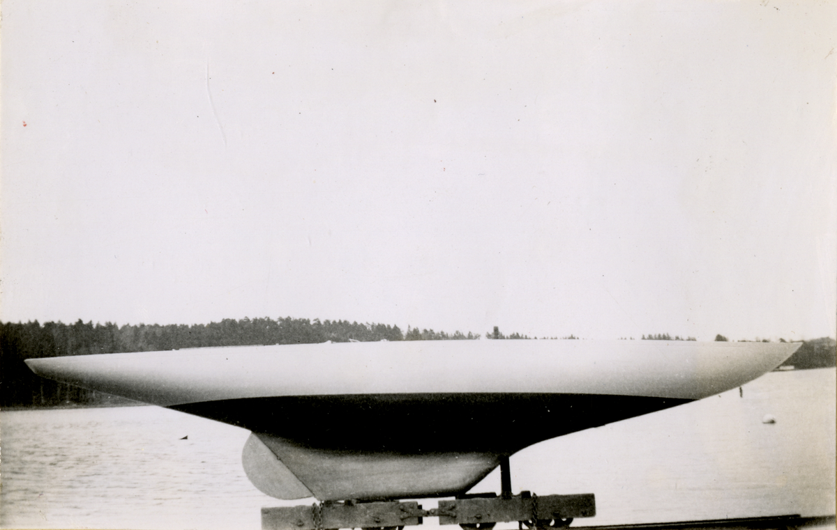 Fotografi ur Detlow von Brauns album. Segelbåten LA FEMME på slip.