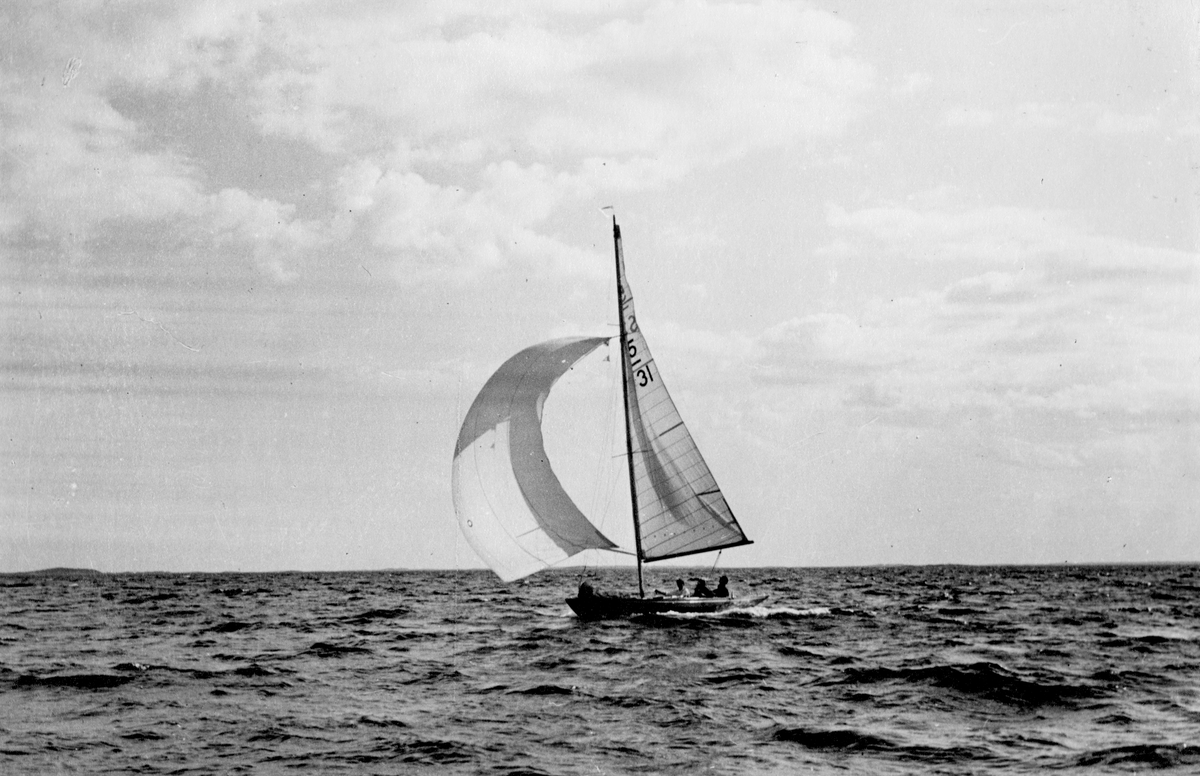 Fotografi ur Detlow von Brauns album. Segelbåten 5-S31 SUZANNE seglas på fjärden.