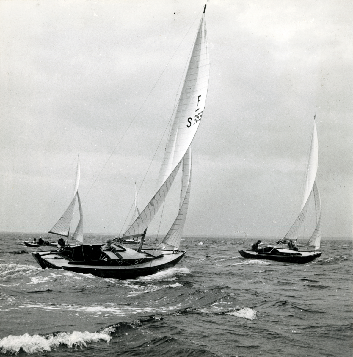 Fotografi ur Detlow von Brauns album. Kappsegling med en F-S363 Folkbåt.