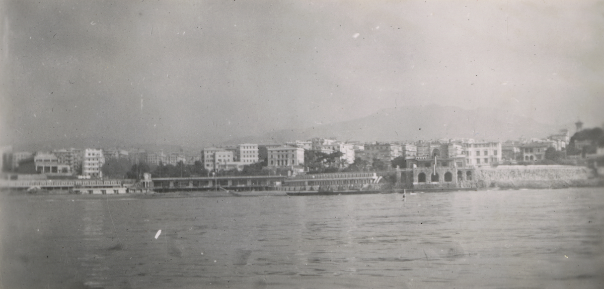 Fotografi ur Detlow von Brauns album. Vy över hamnstad. Starplatsen för seglingen.