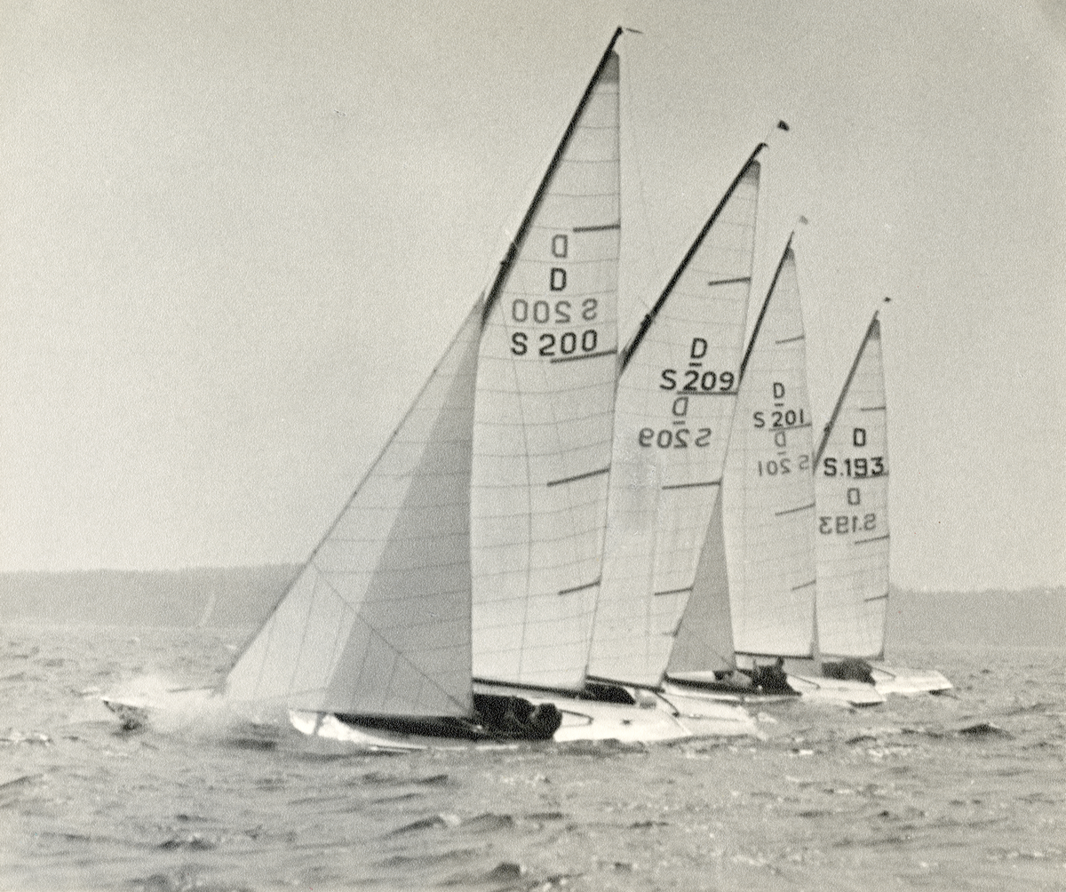 Fotografi ur Detlow von Brauns album. Segelbåtarna D-S200, D-S209, D-S201 och D-S193 i kappsegling.