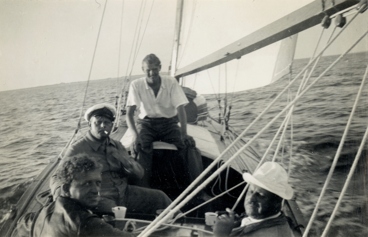Fotografi ur Detlow von Brauns album. Detlow von Braun seglar med sällskap.