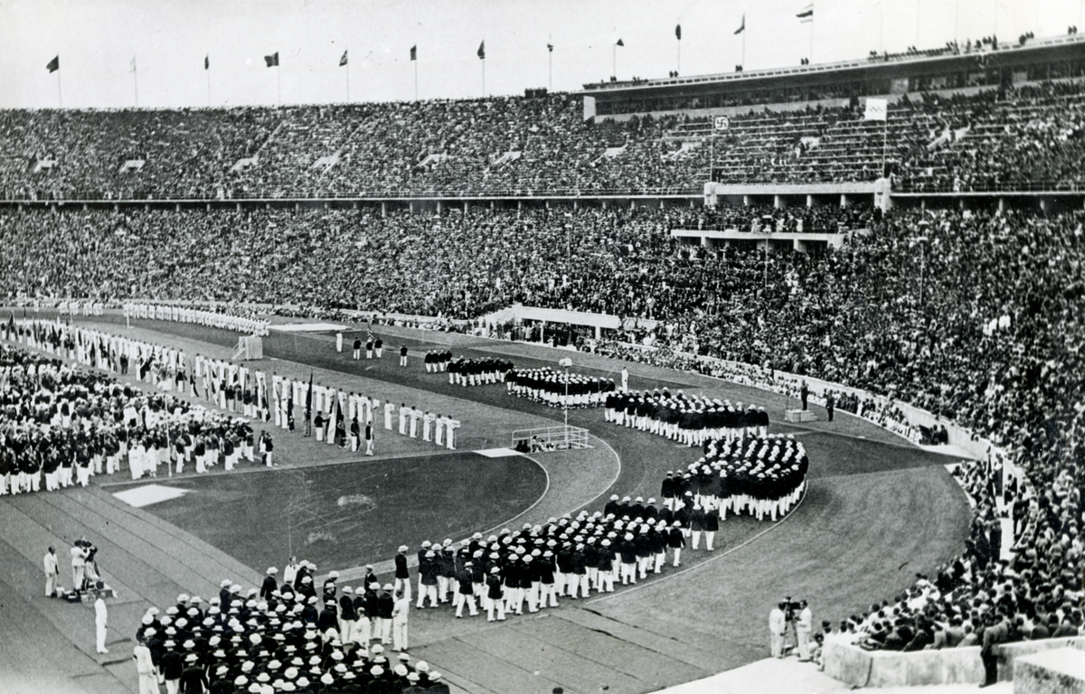 Fotografi ur Detlow von Brauns album. Intågande vid invigningen av Olympiaden i Berlin 1936.