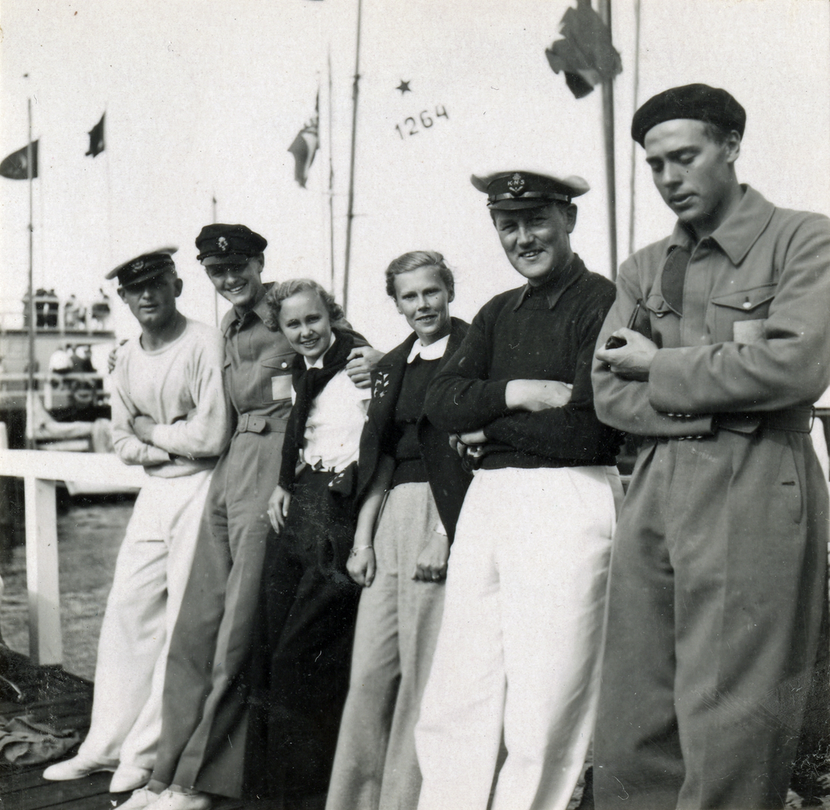 Fotografi ur Detlow von Brauns album. Segelsällskap på bryggan vid OS-seglingarna..