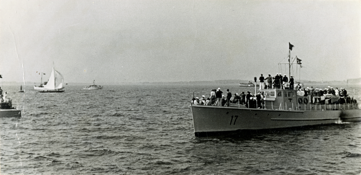 Fotografi ur Detlow von Brauns album. Fartyg med åskådare vid OS-seglingarna.