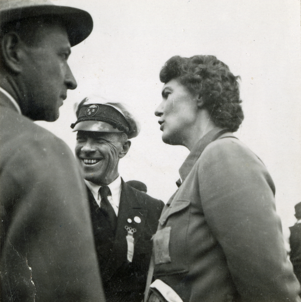 Fotografi ur Detlow von Brauns album. Sven Salén, v Heidenstam och Dagmar Salén vid OS-seglingarna.