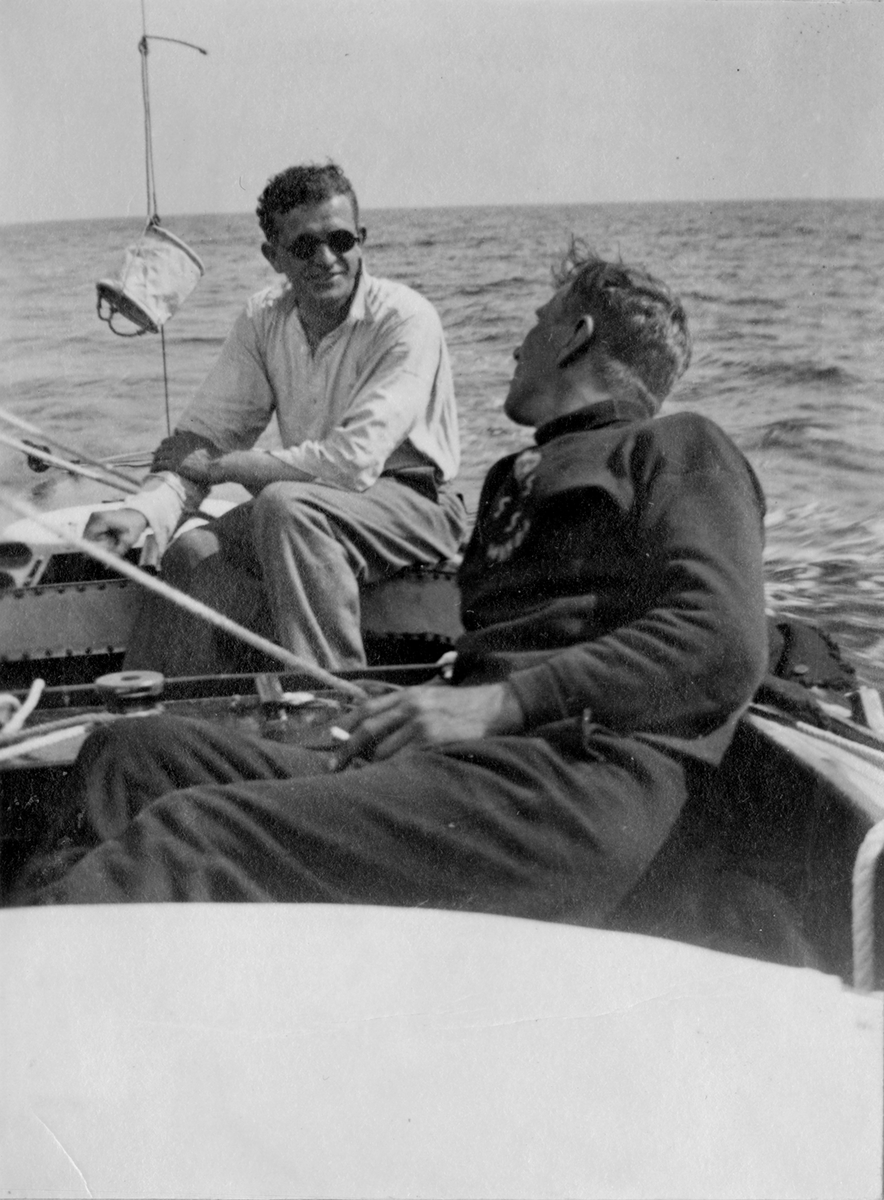 Fotografi ur Detlow von Brauns album. Folke och Adolf Lindberg seglar.