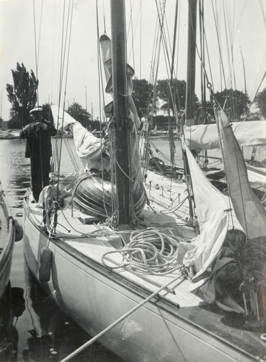 Fotografi ur Detlow von Brauns album. Förtöjd segelbåt vid Langelinie.