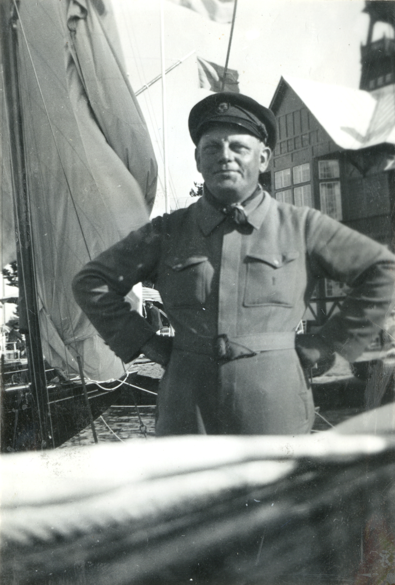 Fotografi ur Detlow von Brauns album. Bernhard på brygga i Sandhamn.