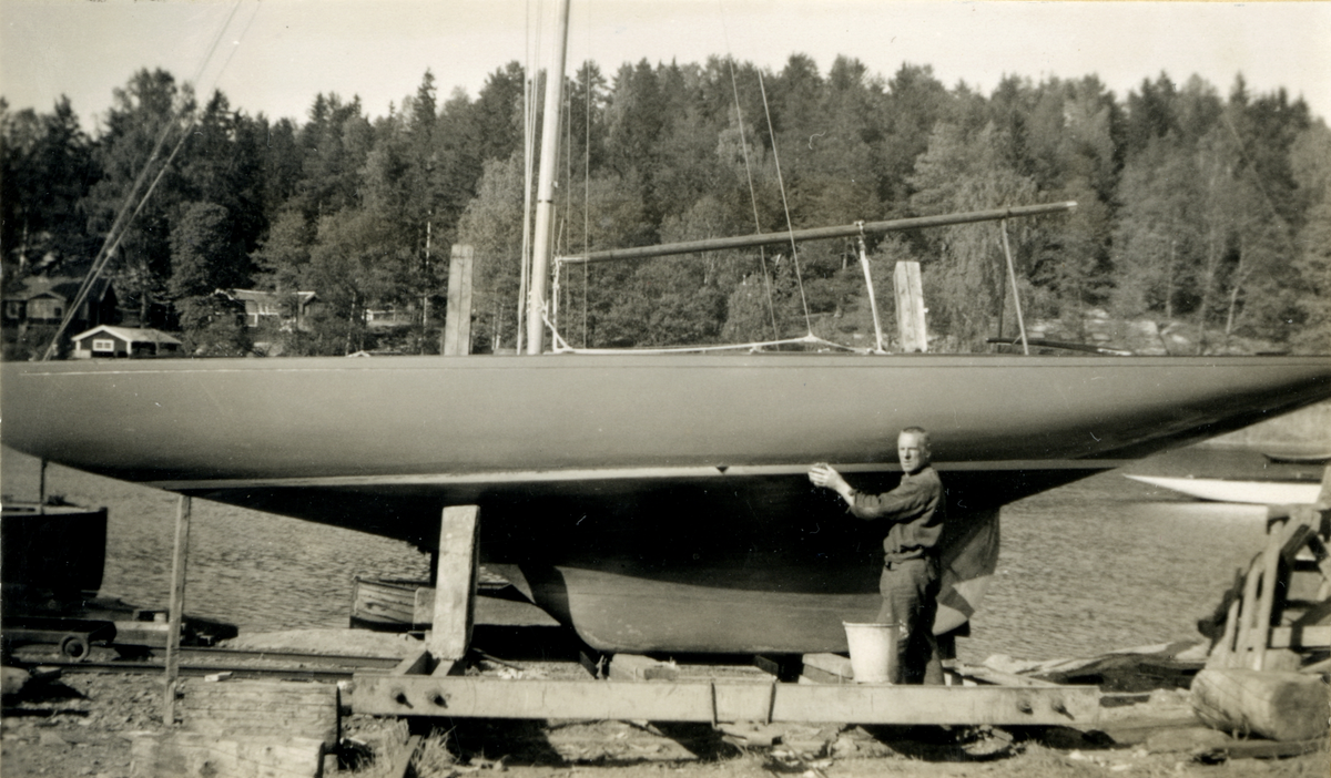 Fotografi ur Detlow von Brauns album. Segelbåt på slip inför sjösättning.