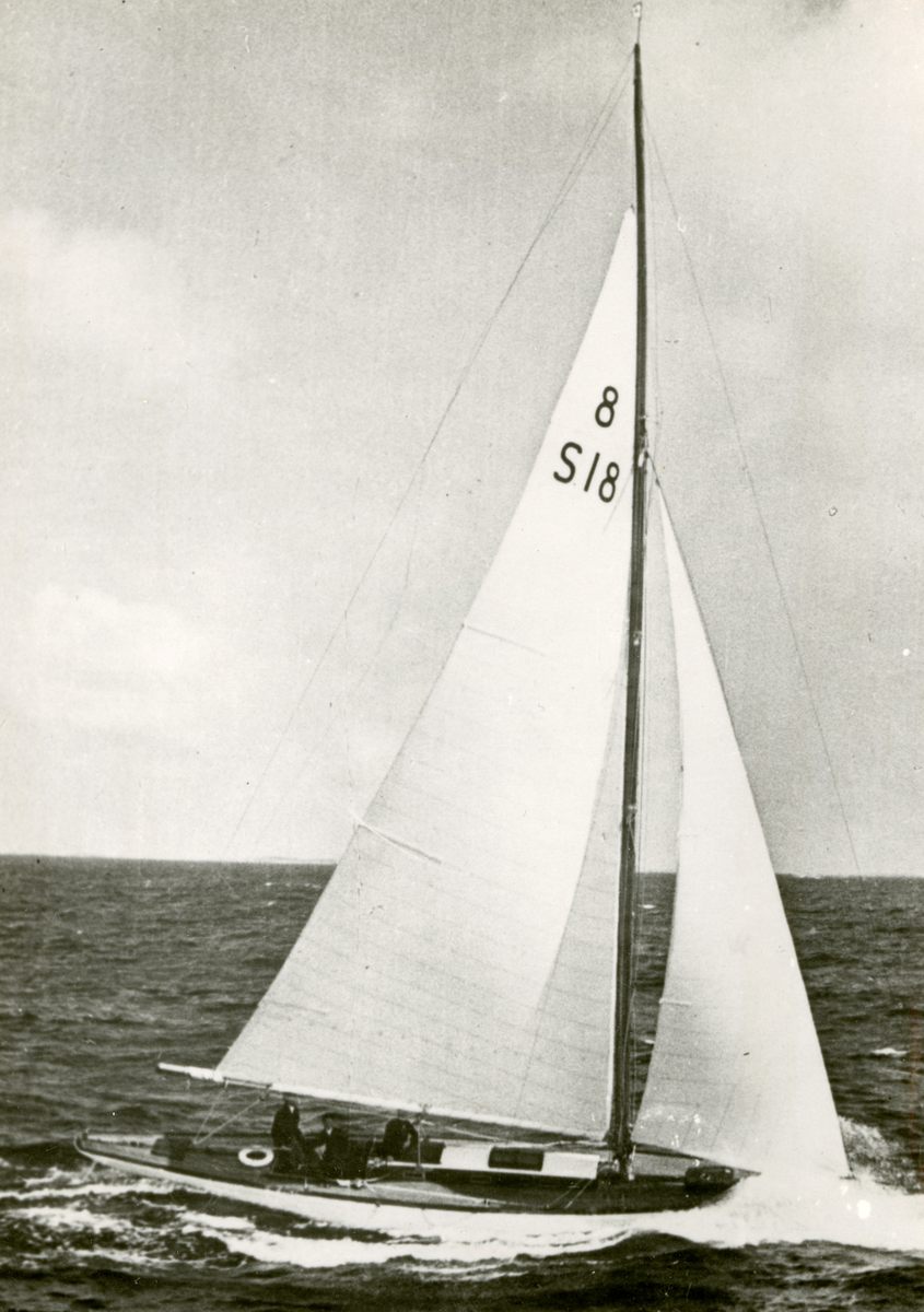 Fotografi ur Detlow von Brauns album. Segelbåten 8-S18 LAILA under Visbyseglingen.