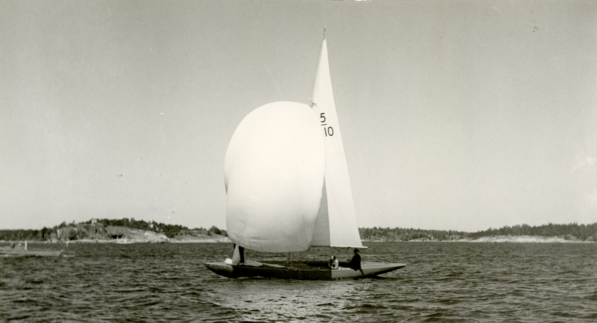 Fotografi ur Detlow von Brauns album. Segling med 5-S10 på Kanholmsfjärden under Sandhamnsregattan.