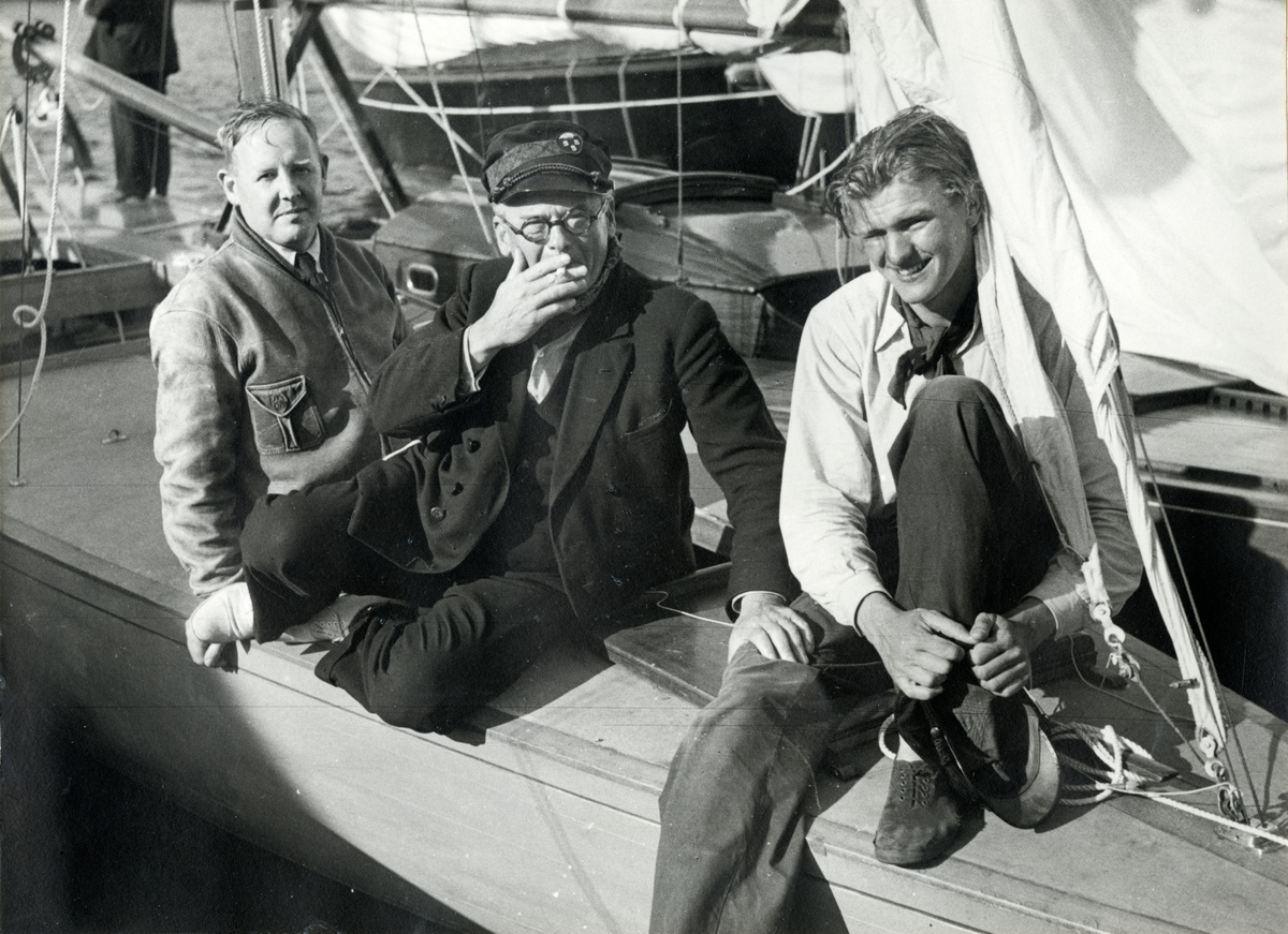 Fotografi ur Detlow von Brauns album. Efter Sandhamnssegern på sgelbåten LA FEMME.