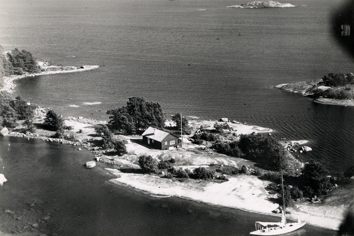 Fotografi ur Detlow von Brauns album. Översiktsbild över Havsörnarnas stuga i Villinge i Stockholms skärgård.
