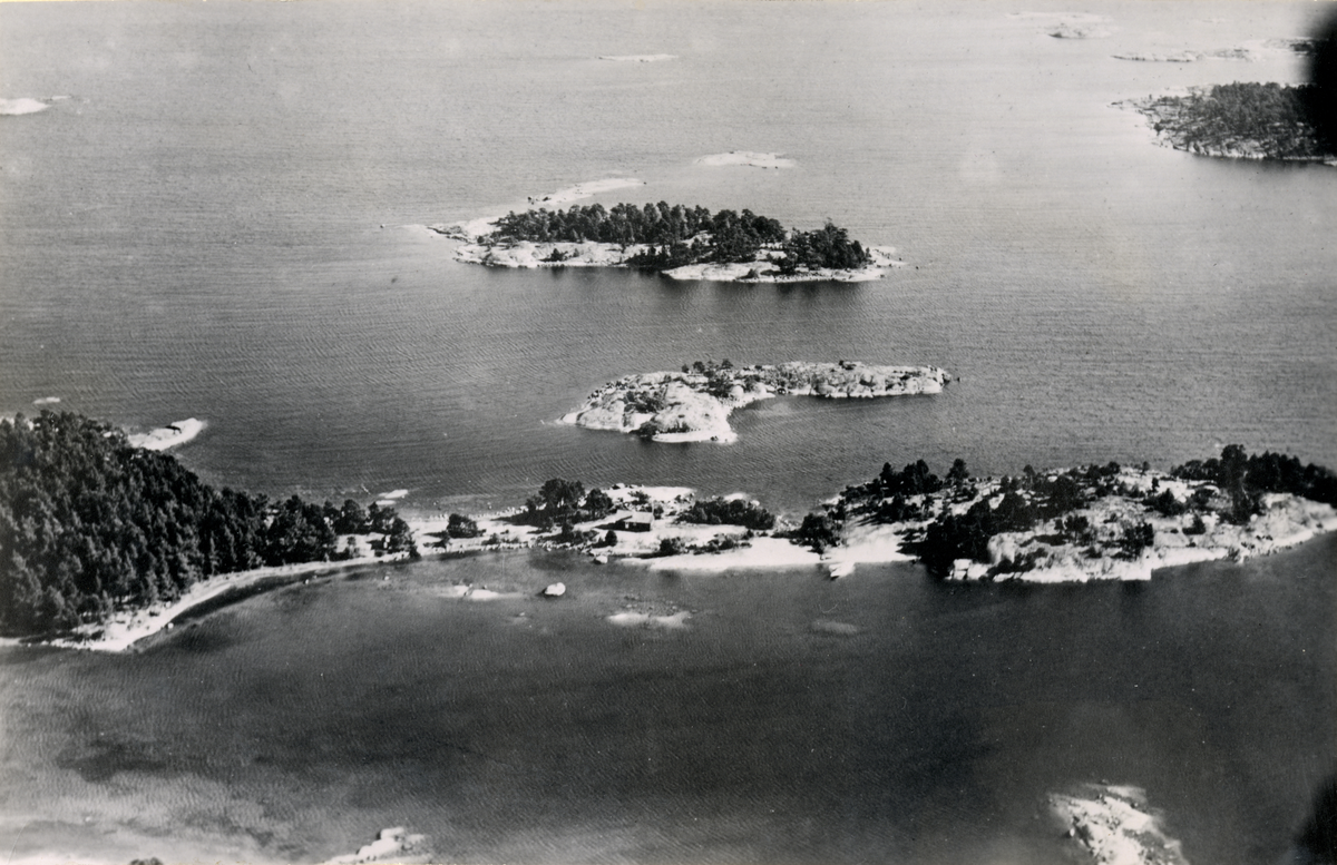 Fotografi ur Detlow von Brauns album. Översiktsbild över Villinge i Stockholms skärgård.